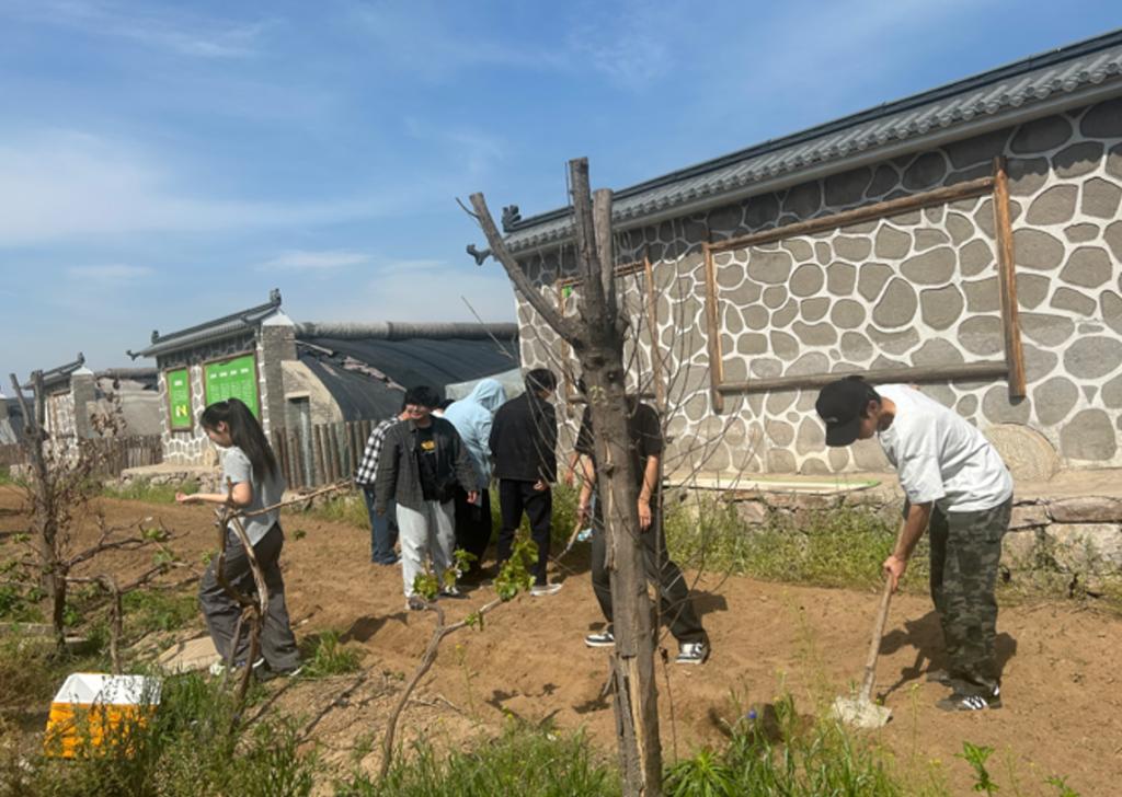 李珊珊与学生们并肩劳作,鼓励大家积极投入劳动,做好日常维护,早日收获希望的果实。
