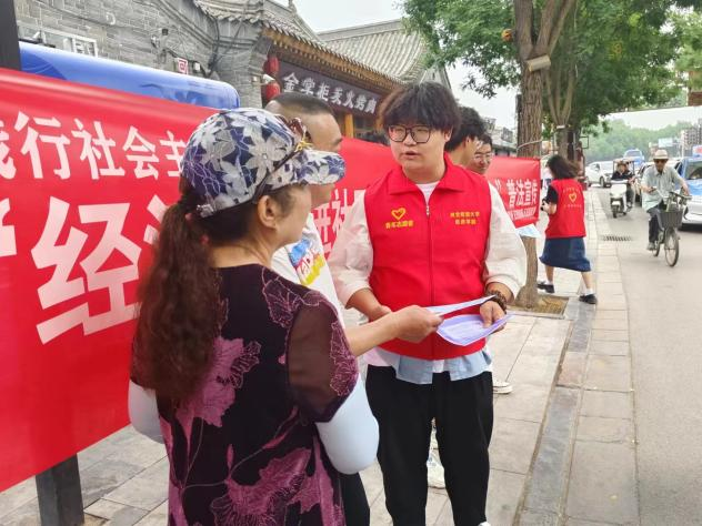 2024年5月19日上午,太阳成tyc33455cc团委协同法学院团委、工商管理学院团委赴石家庄市正定镇东门里旺泉古街开展“经济普法进社区,法治意识入人心”普法宣传活动。此次活动旨在增强大学生的社会责任感,同时普及经济法律知识,提高社区居民的法律意识和维权能力。