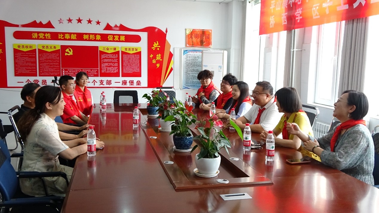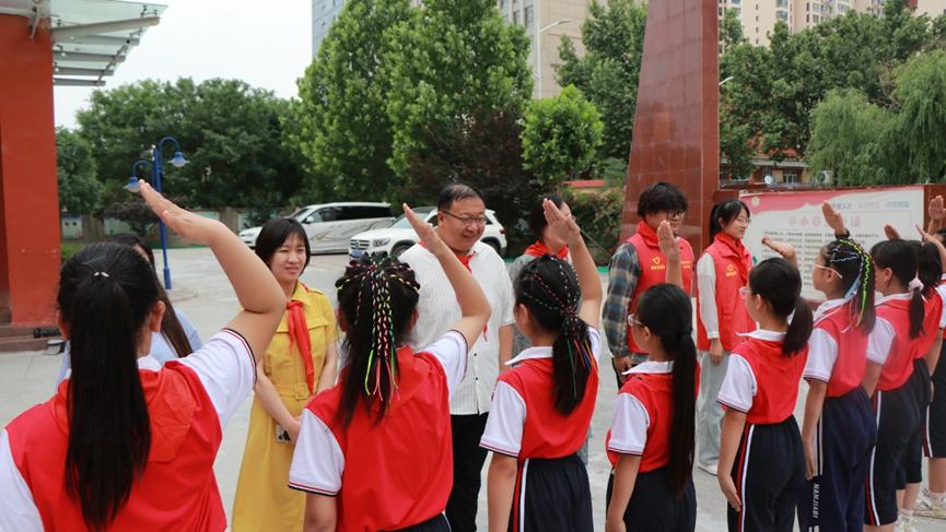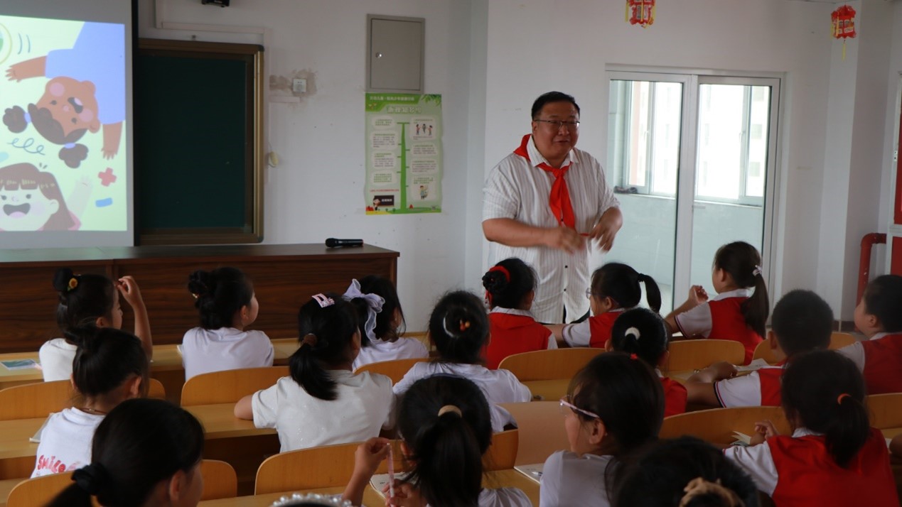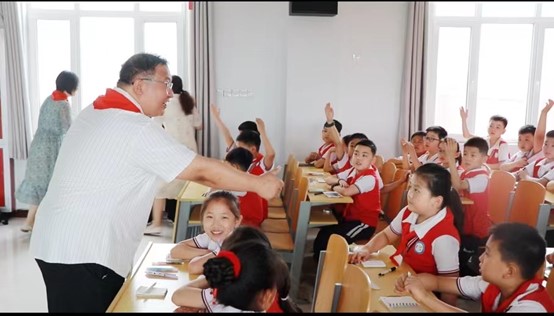老师和同学们对领导老师和志愿者的到来表示热烈欢迎,同学们还为志愿者们系上了鲜艳的红领巾,向志愿者们敬以少先队员之礼。少先队员是祖国的花朵,而志愿者们正如点点萤火,为花朵指引生长的方向。
