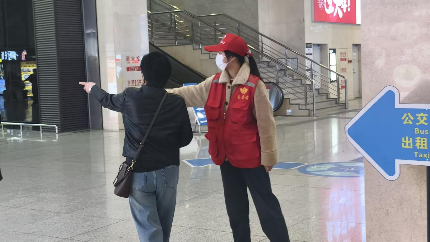 “您好,请问您需要帮助吗?”“请往这边走,检票口在前面。”……在火车站进站口、售票机、服务台等地,随处可见志愿者们忙碌的身影。他们耐心解答旅客疑问,引导旅客有序进站,用实际行动诠释着“奉献、友爱、互助、进步”的志愿精神。