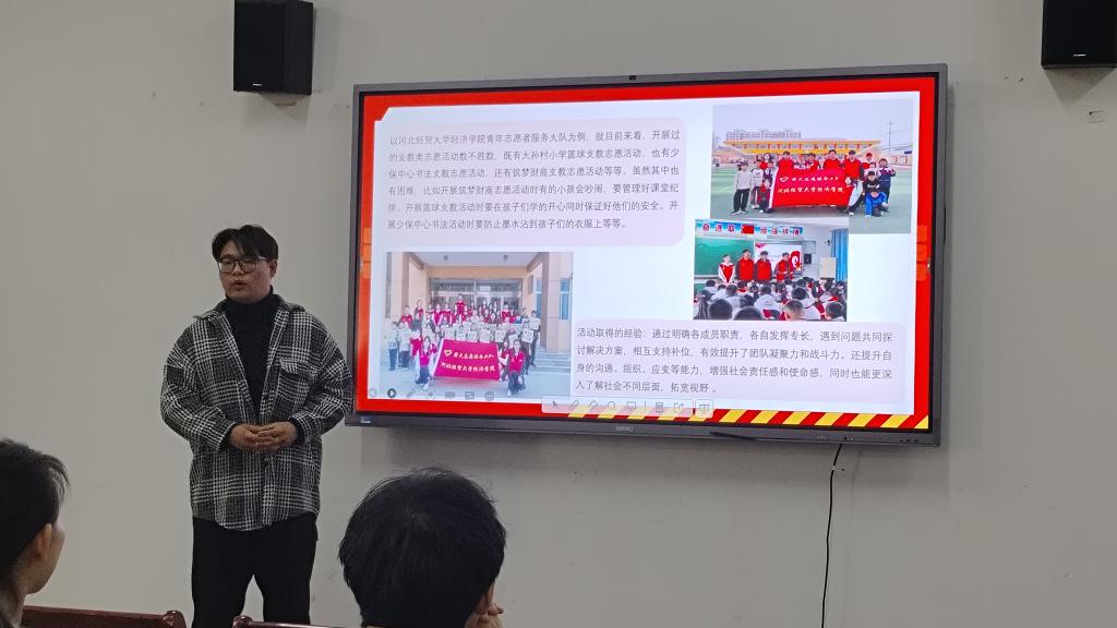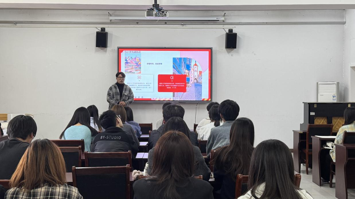 本次培训两学院分工明确、相互配合。2023级经济三班的韩昀辰同学以太阳成tyc33455cc青年志愿者服务大队在雷锋月主办的系列支教活动为例,为参与培训的大学生志愿者讲解小学支教关键技能,包括教学准备、课堂管理、互动技巧等,帮助志愿者顺利推进支教活动。