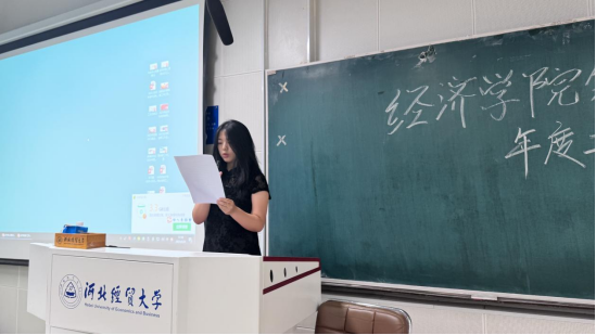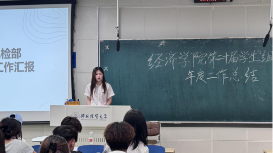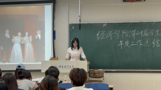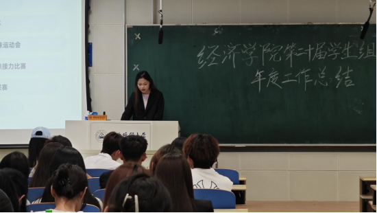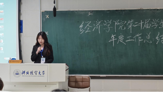 最后,吴子雨对本次会议进行总结发言。她首先对大家本年度的工作成效表示肯定,并对下一届学生干部提出三点期望:一是牢记服务初心,始终以同学需求为导向:二是强化团队协作意识,通过有效沟通化解难题;三是保持创新精神,积极探索工作新思路、新方法。最后,她希望大家在工作中都能有所收获,继续为学院发展注入青春力量。