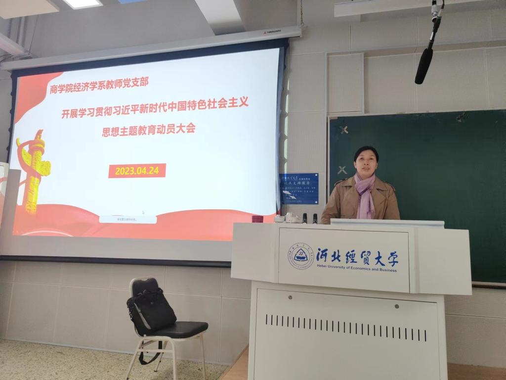 4月24日下午,商学院经济学系教师党支部在B教301教室举办学习贯彻习近平新时代中国特色社会主义思想主题教育动员大会暨第十三期“党建论坛”活动。本次活动由支部书记王书军主持,支部全体党员参加。